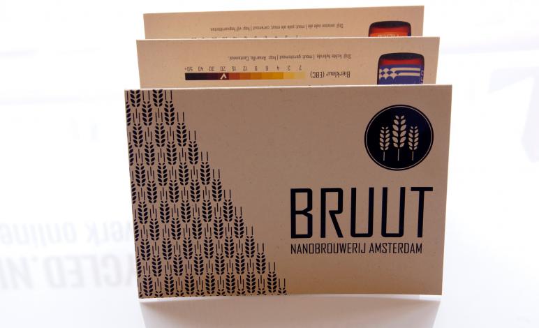Folder voor Bruut Bier, gedrukt op 285 grams Earth Pact Natural, vervolgens gerild en gevouwen